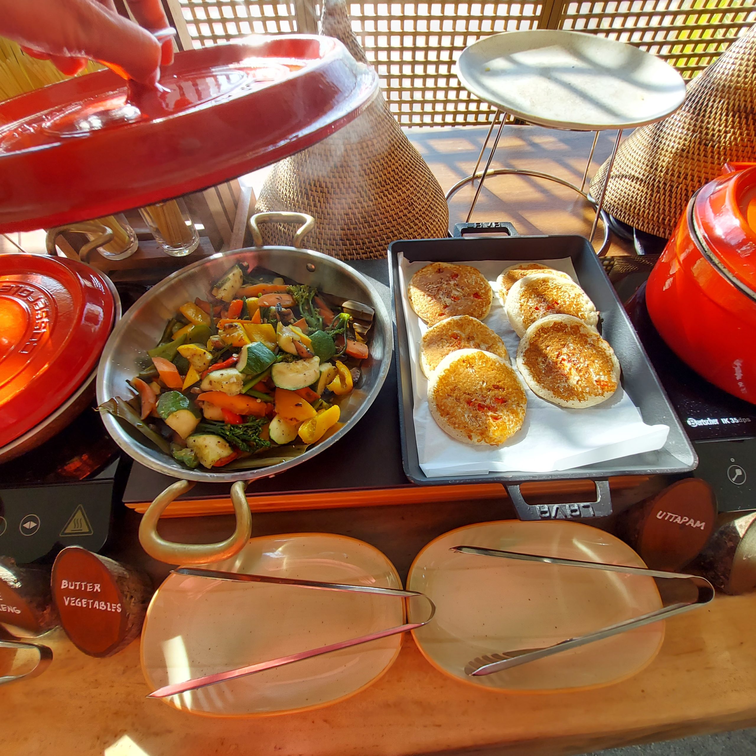 今まで食べたホテルの朝食で一番充実していました(感動という点ではPH京都の和食ですが)。そして毎日違うものが食べれて毎回出てくるのが美味しい。インド洋のど真ん中の島でこんなに美味しい物が食べれるなんて想像していなかったです。Conrad Maldivesの朝食の数倍美味しかったです。Okonomiyaki (お好み焼き)は友達夫婦がオーダーしていましたが、全然お好み焼きじゃなかったようです。