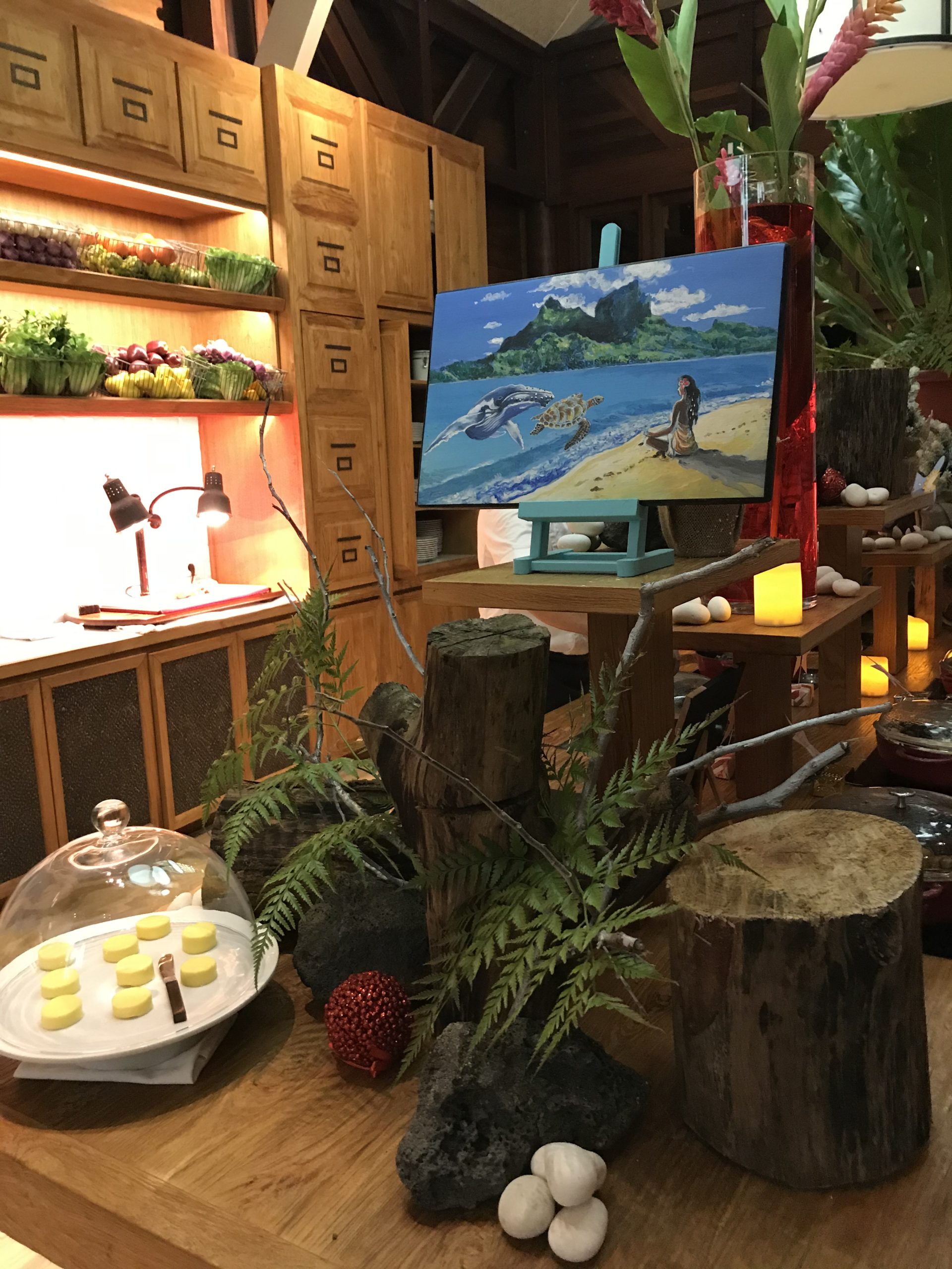 夕方ポリネシアンショーが行われる会場で色々準備がすすめられ、どうやら何か焼いていたようです。もしかして豚の丸焼きのポリネシアンディナーかな?と思って念の為普通のメニューオーダーできるか聞いてみたら、「できない」と。