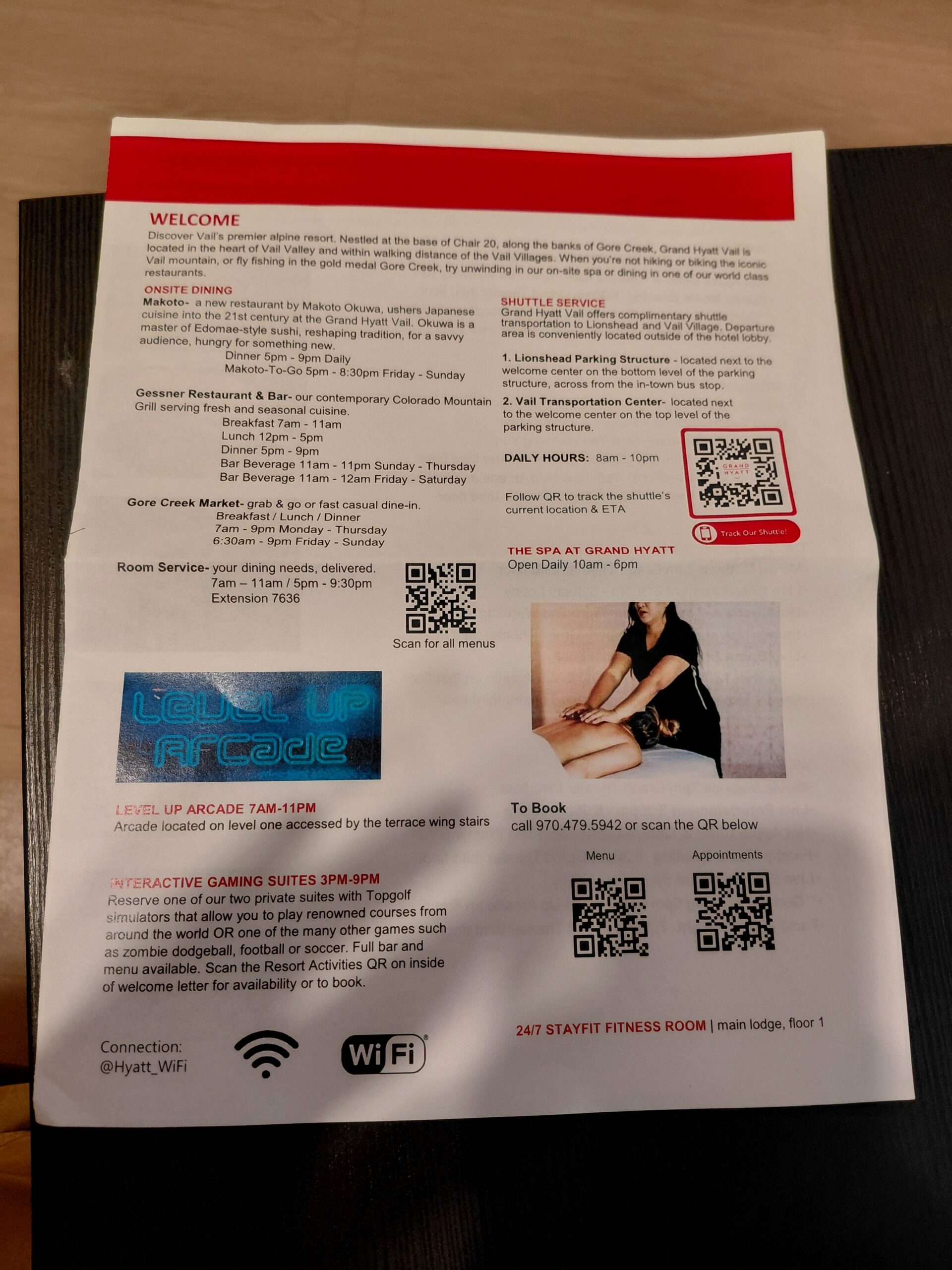 こちらがチェックインでもらったパンフレット↓